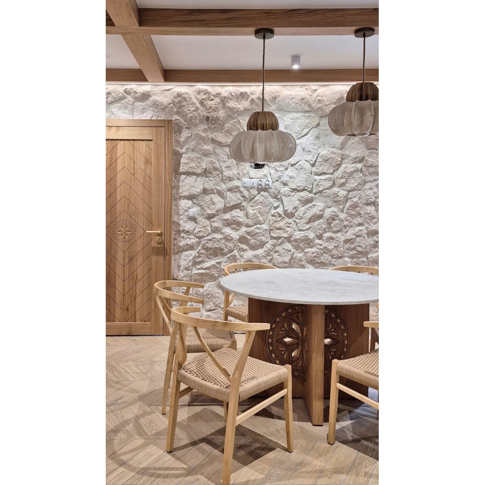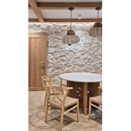 Skrzynio-paleta liczy 13m2 ( tyle powinien ułożyć fachowie, kiedy układa kamień z fugą) Beżowo-kremowy kamień o organicznych kształtach. Posiadamy narożniki do tego kamienia. Indywidualne wyceny przy większej ilości kamienia.