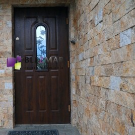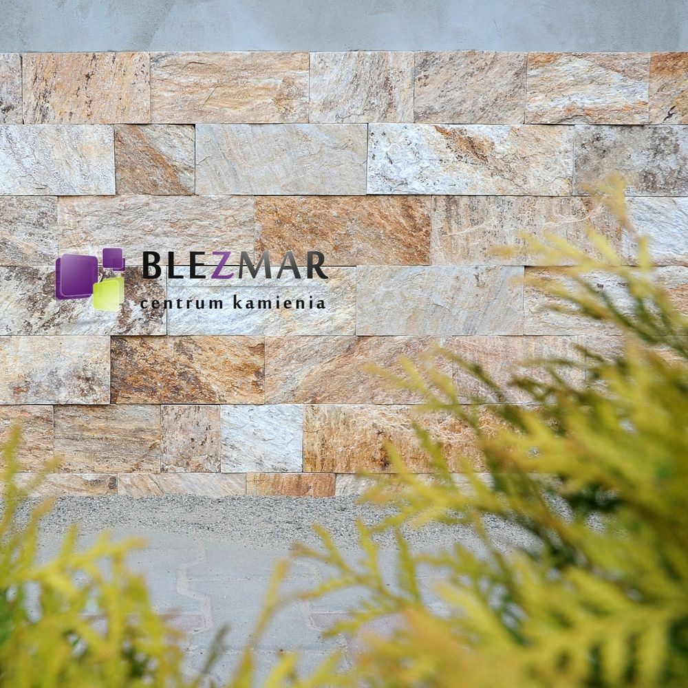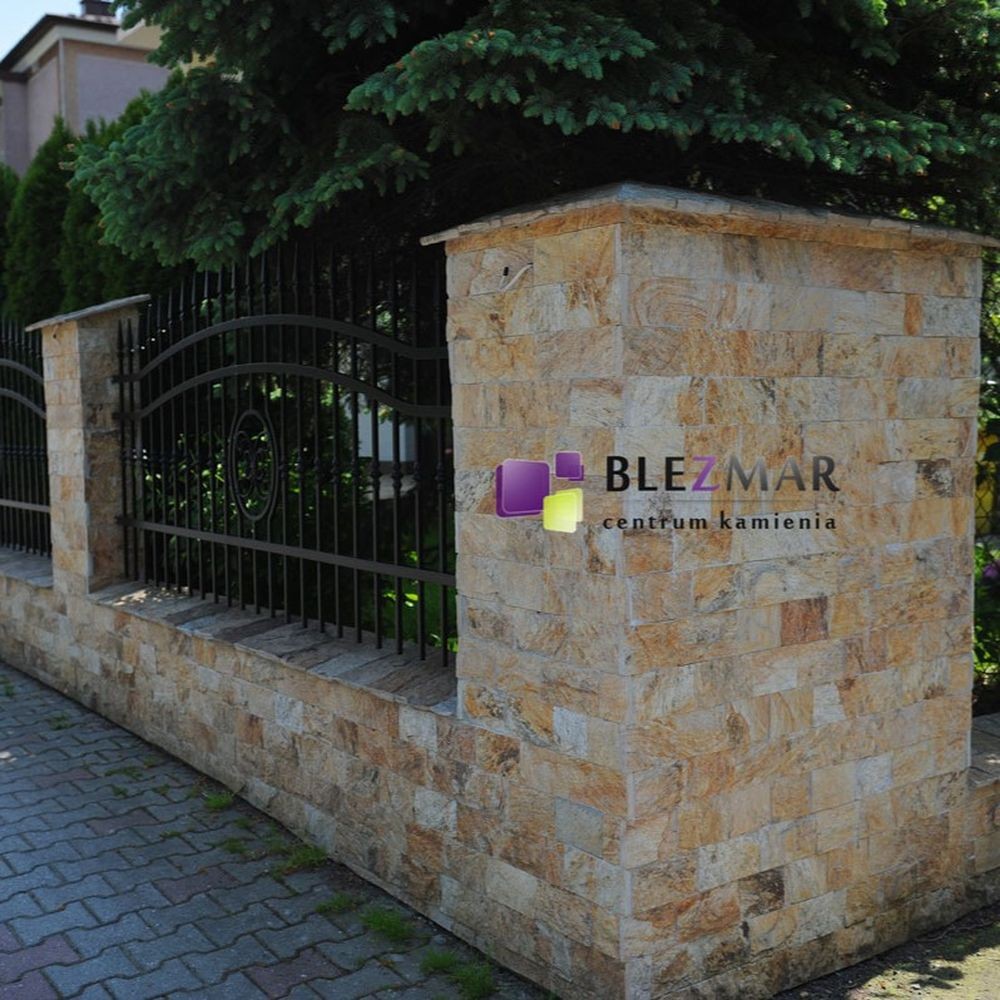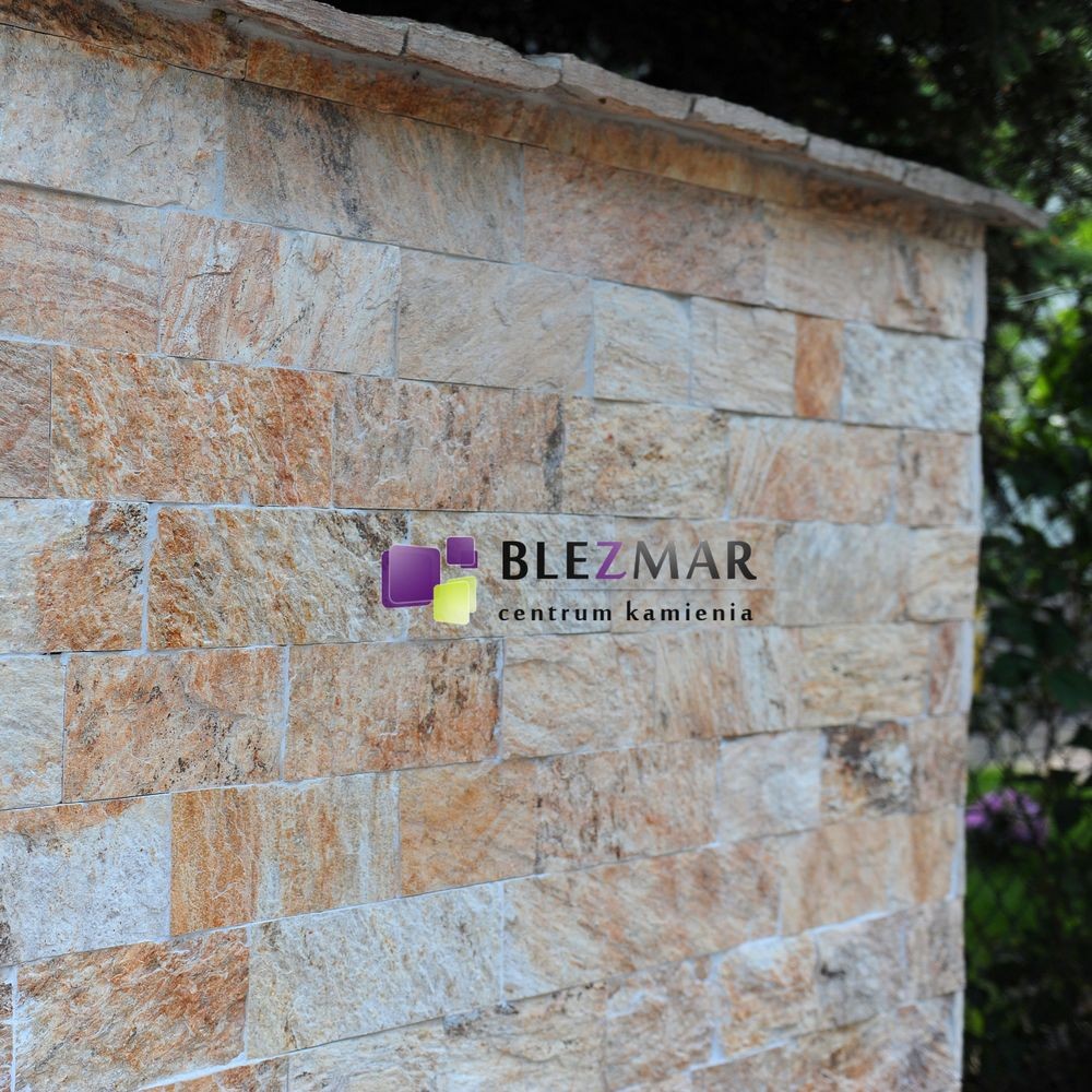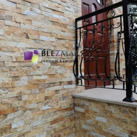 Kamień naturalny o ciepłym kolorze wzbogacony brązowymi przeżyleniami.