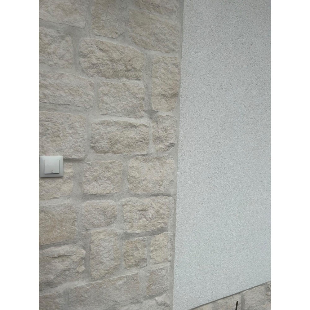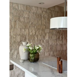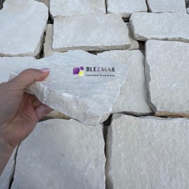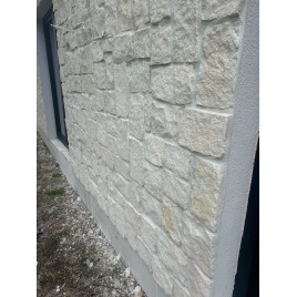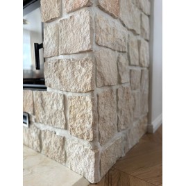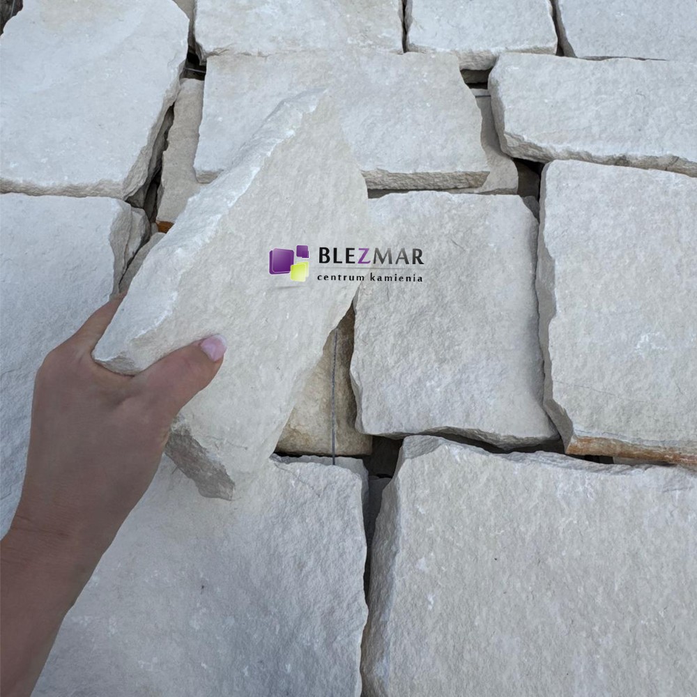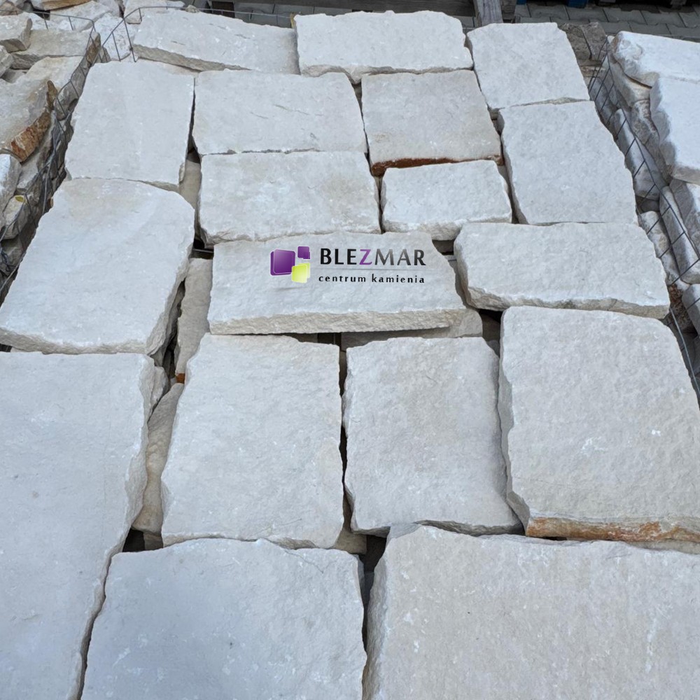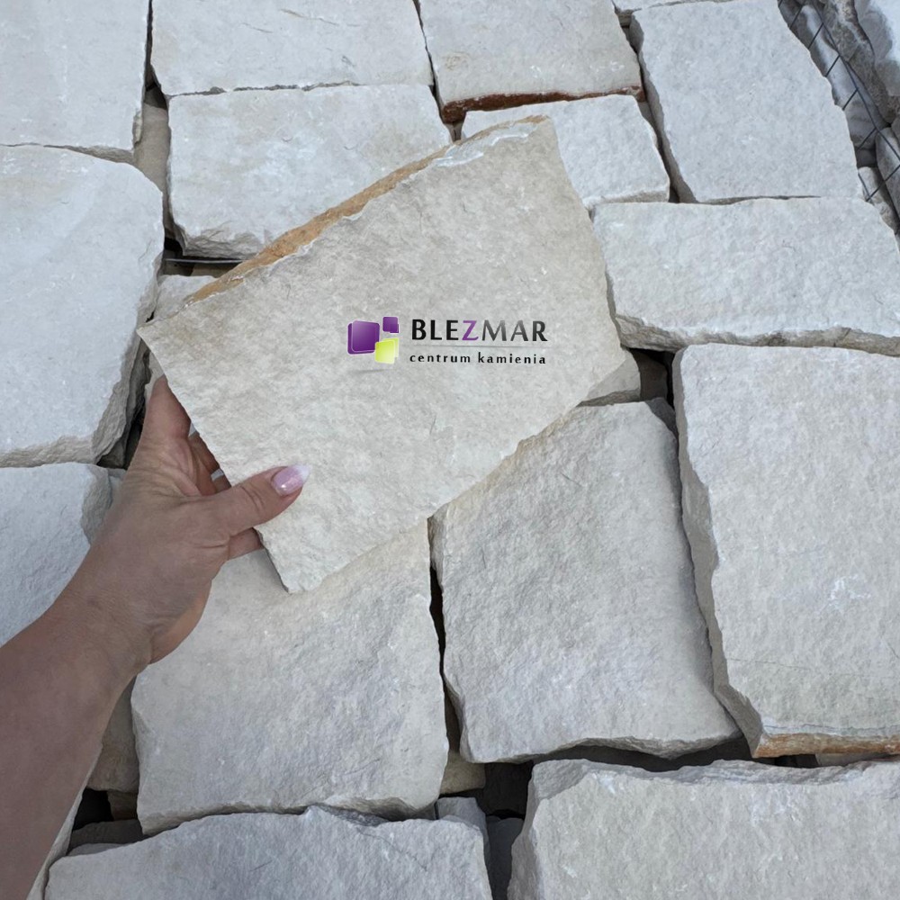 Śmietankowy wapień o łupanej strukturze, pasujący do stylu farmhouse, prowansalskiego jaki i rustykalnego.
