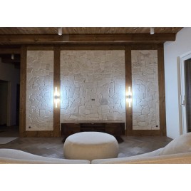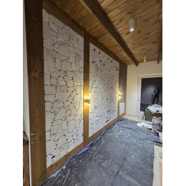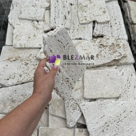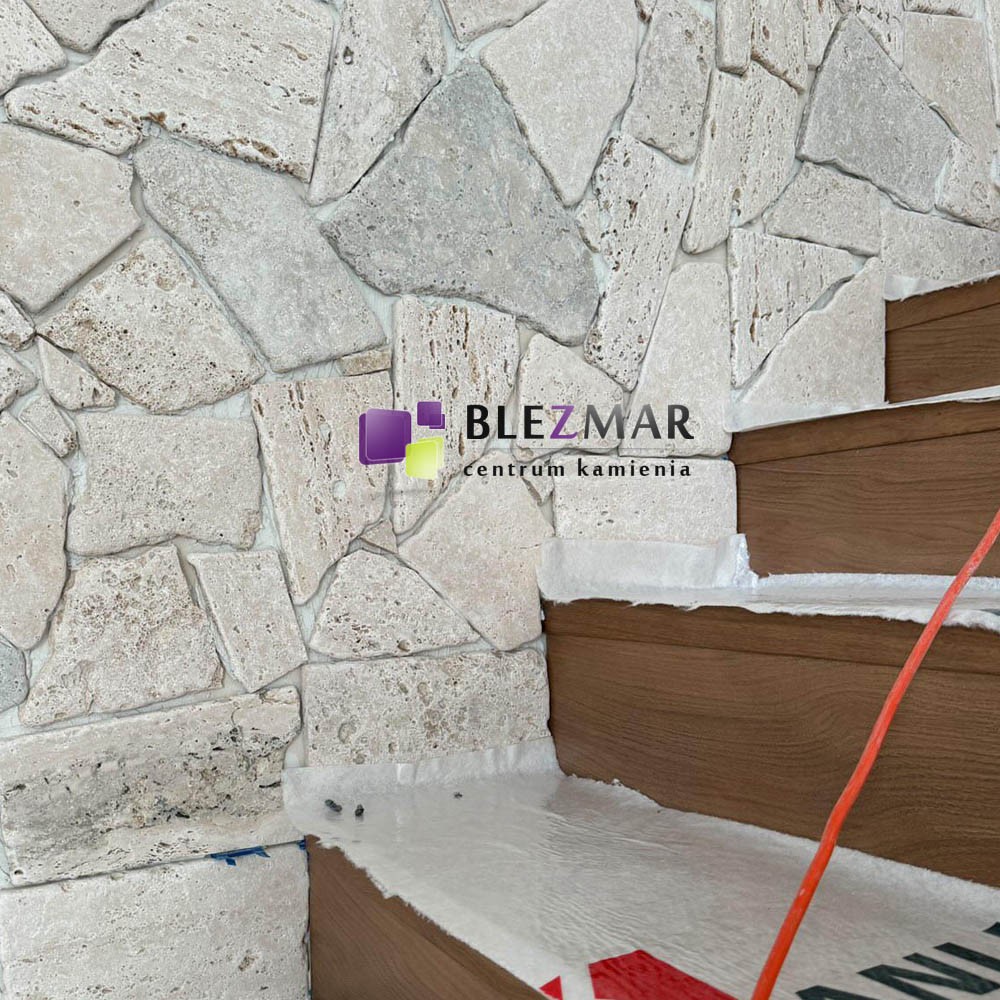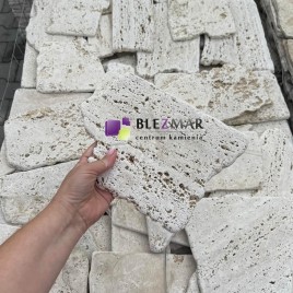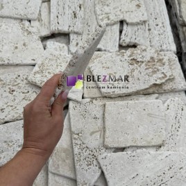 Dekoracyjny, super cienki trawertyn, jedynie 1 cm o nieregularnych kształtach. Polecany szczególnie na ścianki o małym obciążeniu kg krawędziach