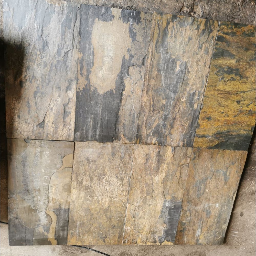 Odkryj prawdziwe arcydzieło natury z indyjskim łupkiem California Gold. Wielobarwne płytki z indyjskiego łupka California Gold to idealne połączenie ciepłych odcieni ziemi z surową strukturą kamienia. Mrozoodporne, trwałe i unikalne – doskonałe zarówno do nowoczesnego salonu, jak i na elewację budynku.