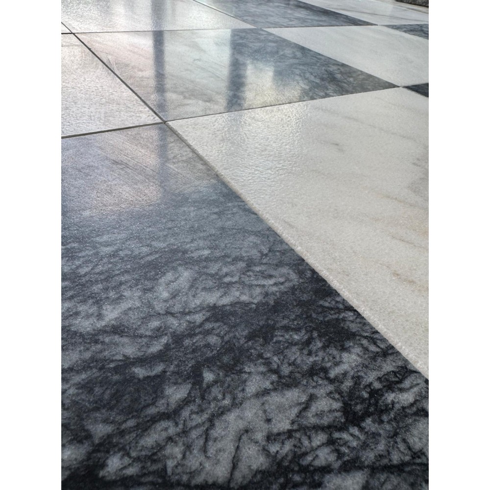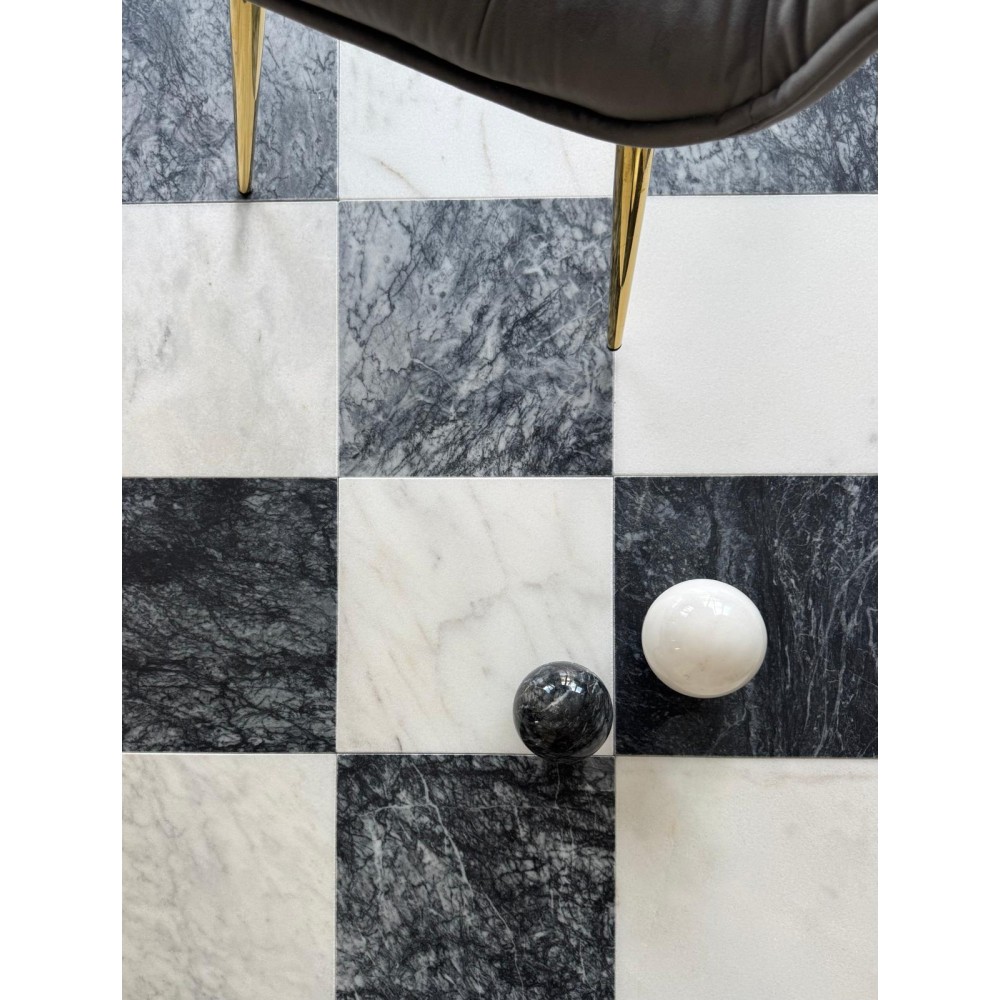Szachownica marmurowa 30,5×30,5×1,2 cm antykowana to luksusowe płytki wykonane z naturalnego kamienia marmurowego, charakteryzujące się eleganckim wzorem czarno-białej szachownicy. Antykowana powierzchnia nadaje każdemu elementowi unikalny, szlachetny wygląd, który idealnie wpisuje się zarówno w klasyczne, jak i nowoczesne aranżacje wnętrz.
