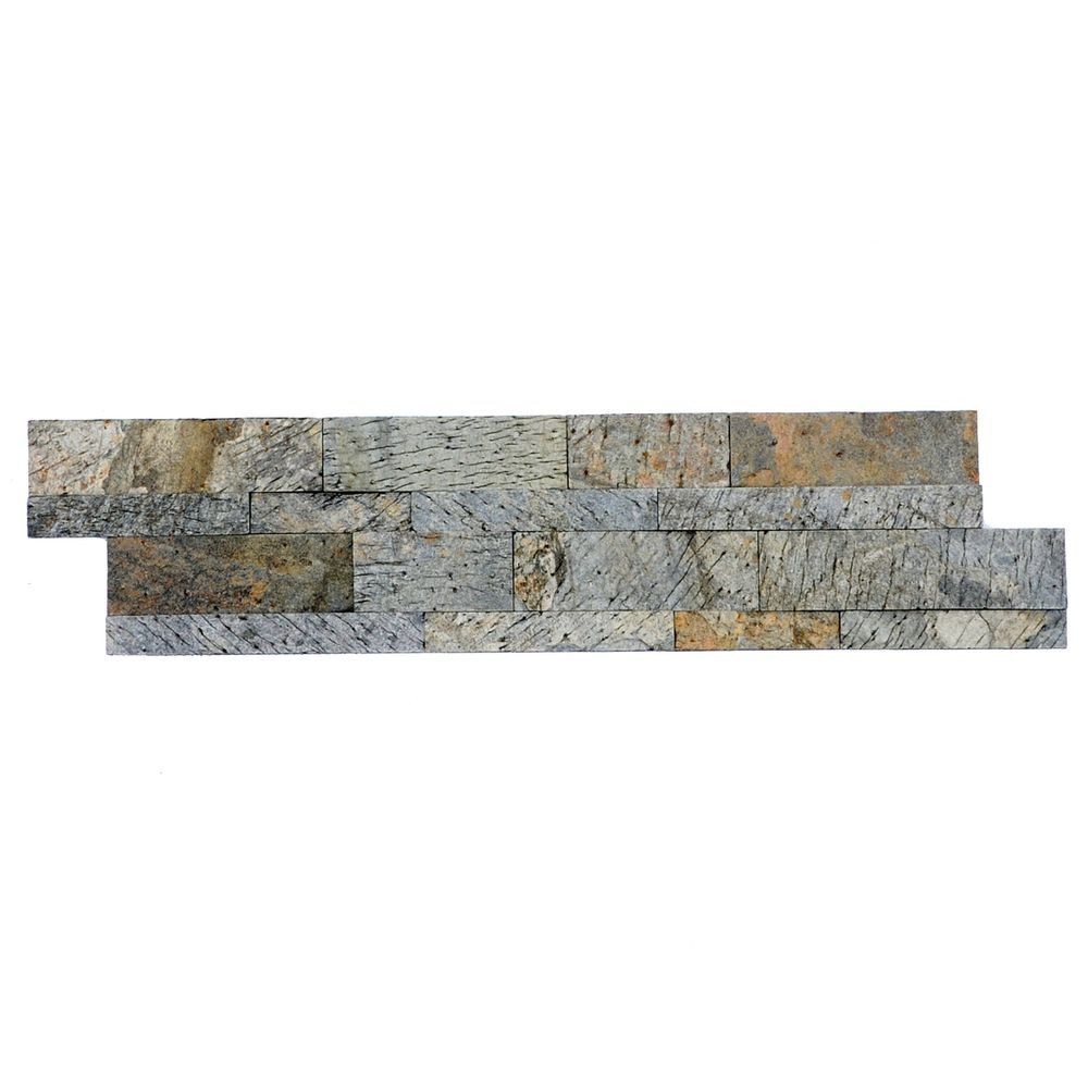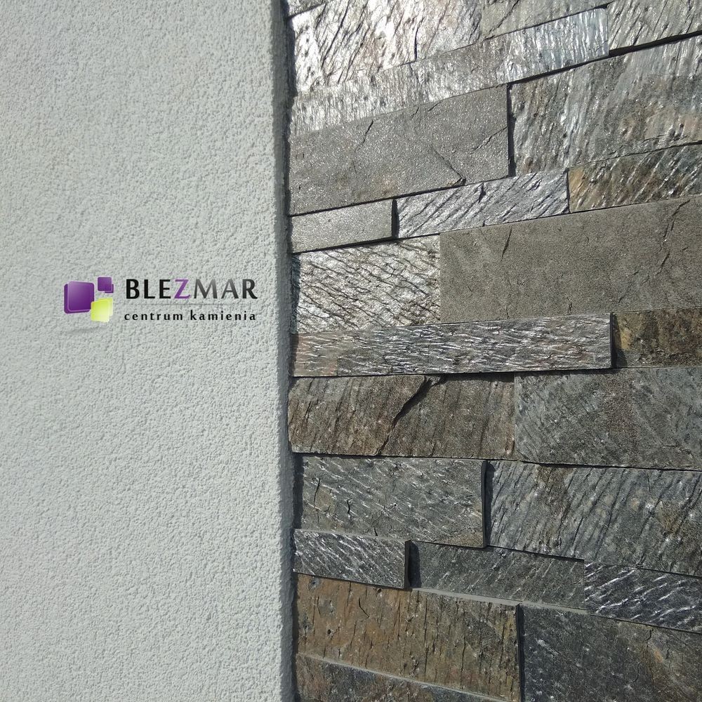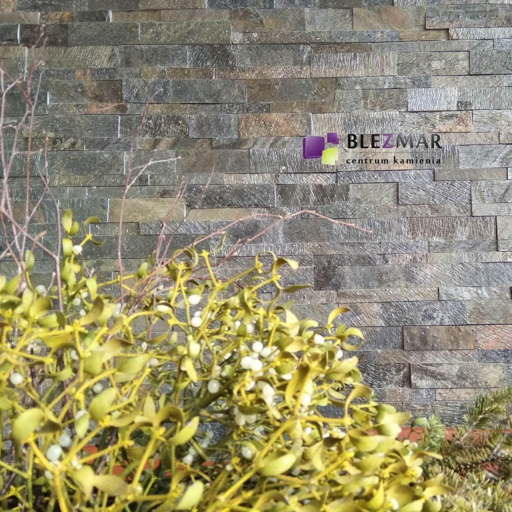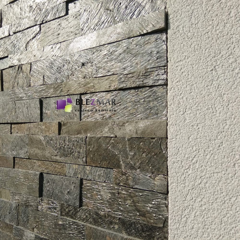 Panel z kamienia naturalnego o szaro-oliwkowym kolorze w metalicznym wykończeniu.
