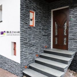 Kamień dekoracyjny PE45 Grafit z polerem, o subtelnej popielatej barwie, wplata w swoją strukturę małe marmurowe paski w tonacji grafitowej, łupane i polerowane, co nadaje mu wyjątkową elegancję. Jest doskonałym wyborem dla nowoczesnych wnętrz, które pragną podkreślić swoją wyrafinowaną estetykę. Kamień ten cechuje się gładką strukturą oraz precyzyjnie ukształtowaną formą. Delikatny odcień grafitu tworzy subtelny kontrast na tle jasnych ścian i mebli, nadając pomieszczeniu wyjątkowy charakter. Kamień dekoracyjny PE45 Grafit z polerem doskonale sprawdza się jako element elewacyjny, zarówno w roli cokołu, jak i delikatnego dodatku do całej elewacji. Jego kompozycja harmonizuje z antracytowymi oknami czy czarnym dachem, tworząc spójny i stylowy wystrój. Aby podkreślić trwałość i piękno tego kamienia, zalecamy jego zaimpregnowanie, co zapewni mu niezmienne walory przez lata. Kamień dekoracyjny PE45 Grafit z polerem - doskonały wybór dla tych, którzy pragną wprowadzić do swoich przestrzeni niepowtarzalny rafinament i trwałą elegancję.