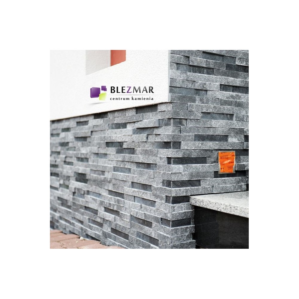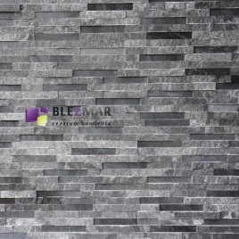 Marmurowe paski w tonacji grafitowej, łupane i polerowane, tworzą niepowtarzalny model panela