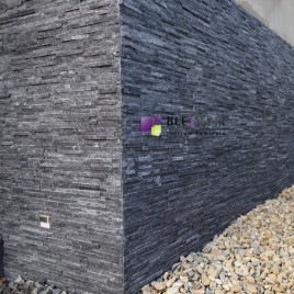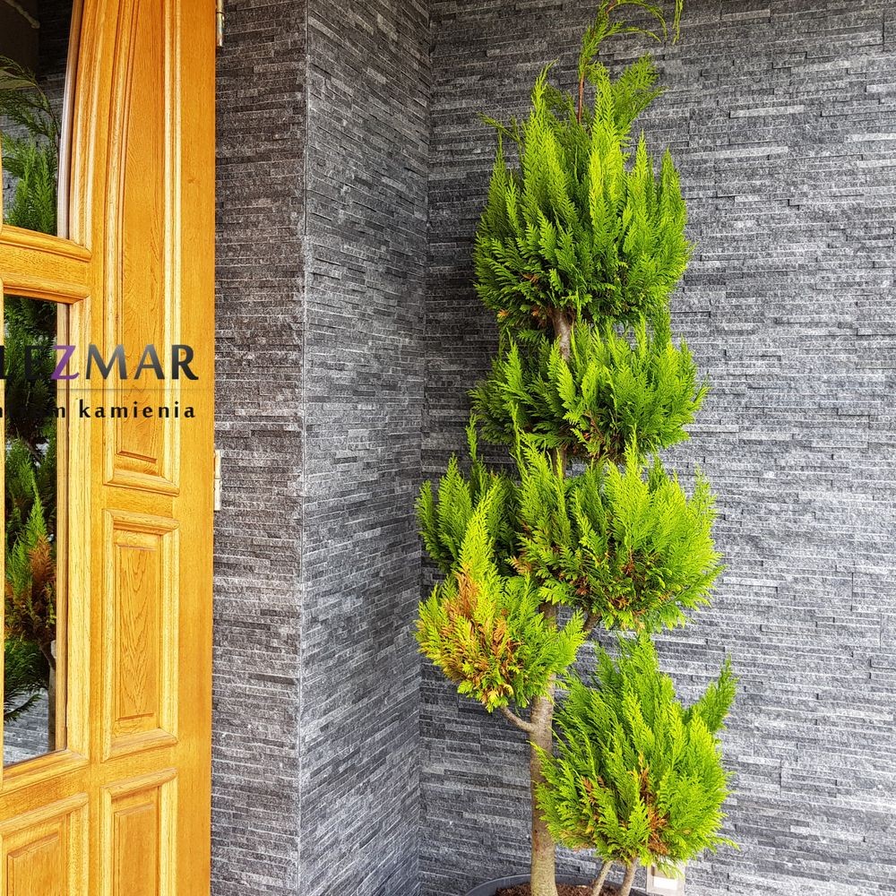 Grafitowy kolor panela PE29 Grafitowy 12 PASKÓW często jest odporny na zabrudzenia, co ułatwia utrzymanie paneli w czystości. Jest to neutralny odcień, który świetnie komponuje się z różnymi kolorami i stylami. Kamień elewacyjny nie tylko podnosi wartość budynku, lecz także pełni funkcję praktyczną, chroniąc przed zniszczeniami i zabrudzeniami w miejscach szczególnie narażonych na uszkodzenia. W obszarze wejścia kamień może być szczególnie imponujący wieczorami, gdy podkreślają go punktowe lampy, rzucające światło na jego nieregularną strukturę. To nie tylko element wykończenia, lecz także integralna część aranżacji, dodająca wyjątkowego charakteru każdemu budynkowi.