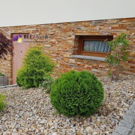 Panel PE40 Modern to wyrafinowany element dekoracyjny, skonstruowany z delikatnie ułożonych, kamiennych pasków, które emanują złotym blaskiem i charakteryzują się unikalną fakturą. Dzięki naturalnej, strukturalnej powierzchni, panele te harmonijnie wkomponowują się zarówno w nowoczesne, jak i rustykalne wnętrza. Ich imponująca odporność na warunki atmosferyczne, twardość oraz niezwykła wytrzymałość na ścieranie i uszkodzenia mechaniczne sprawiają, że doskonale sprawdzają się także na zewnątrz - na tarasach, zewnętrznych schodach, ogrodzeniach czy elewacjach. W ten sposób, Panel PE40 Modern nie tylko nadaje wnętrzom niepowtarzalny charakter, ale również stanowi eleganckie i trwałe rozwiązanie także dla przestrzeni zewnętrznych.