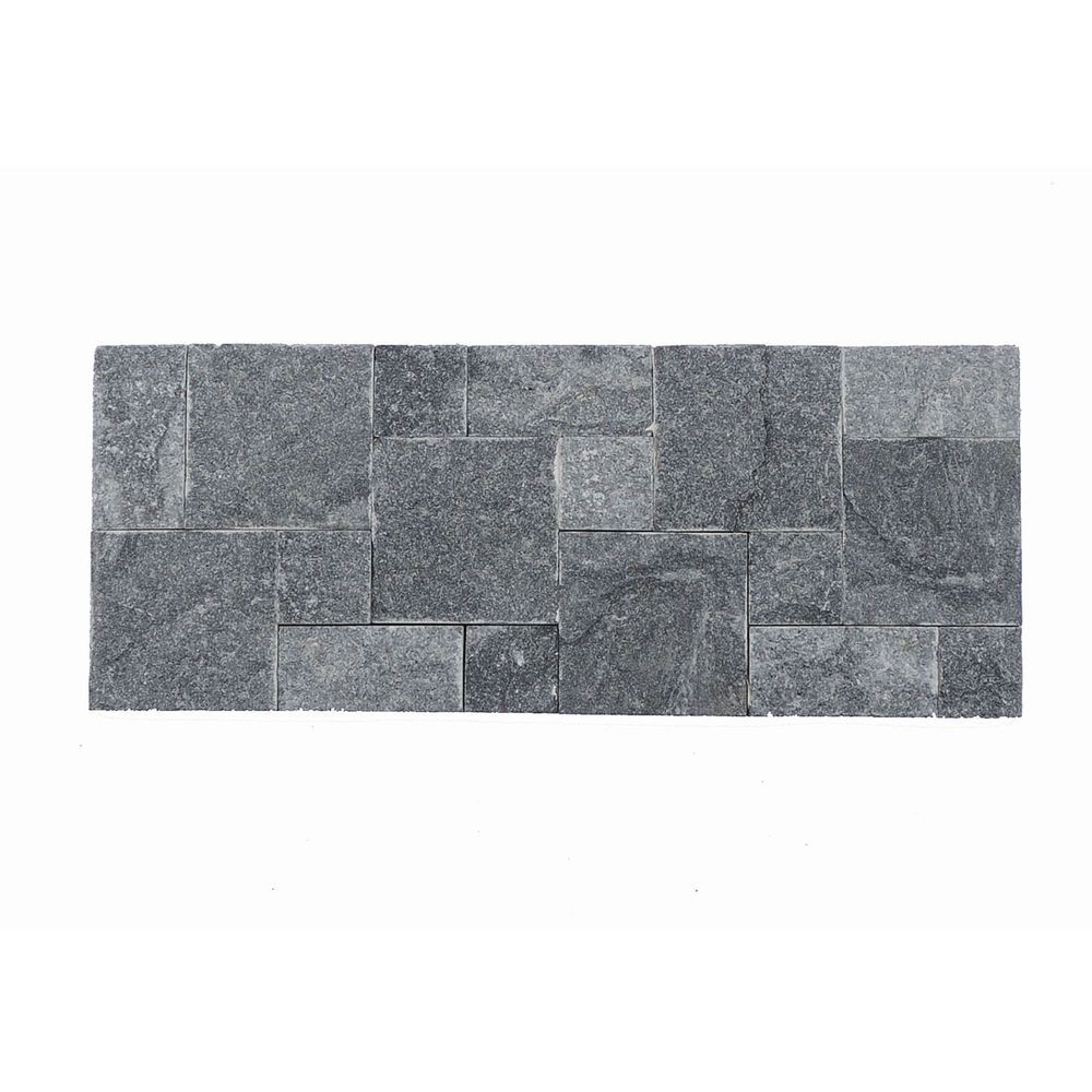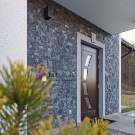 Panele ścienne z kamienia naturalnego PE15 Mozaika Grafitowa stworzona z naturalnego kamienia wyróżniają się wyjątkową trwałością, stanowiąc inwestycję, która cieszy oko przez bardzo długi czas. Grafitowy kwarcyt, będący skałą metamorficzną, posiada niezwykłą twardość i zbite struktury. Panel o szarym kolorze, mieniący się w promieniach słońca, wprowadza do otoczenia subtelny i dynamiczny efekt wizualny.
