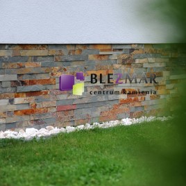 Łupkowata struktura kamienia PE 14 Multicolor otwiera przed nami nieograniczone możliwości aranżacyjne. Przy doborze odpowiednich dodatków istnieje pełna swoboda w urządzaniu zarówno wnętrz, jak i przestrzeni zewnętrznych, korzystając z szerokiej palety kolorów ziemi. To, co nadaje kamieniowi niezwykły urok, to trójwymiarowa struktura, która sprawia, że wydaje się, jakby był on układany z przypadkowych elementów. Kamień naturalny idealnie współgra z zielenią roślinności w otoczeniu, tworząc harmonijną kompozycję z naturą. Dzięki tym cechom kamień elewacyjny staje się nie tylko elementem dekoracyjnym, ale także praktycznym i trwałym rozwiązaniem, które może znacząco podnieść wartość estetyczną i funkcjonalną każdego projektu architektonicznego.