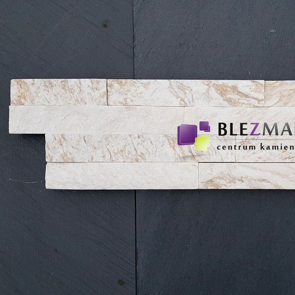 Panel z kamienia naturalnego o kremowo-złotych przebarwieniach.