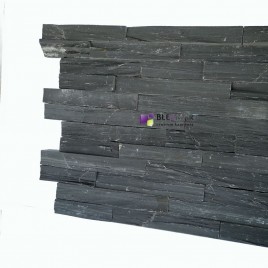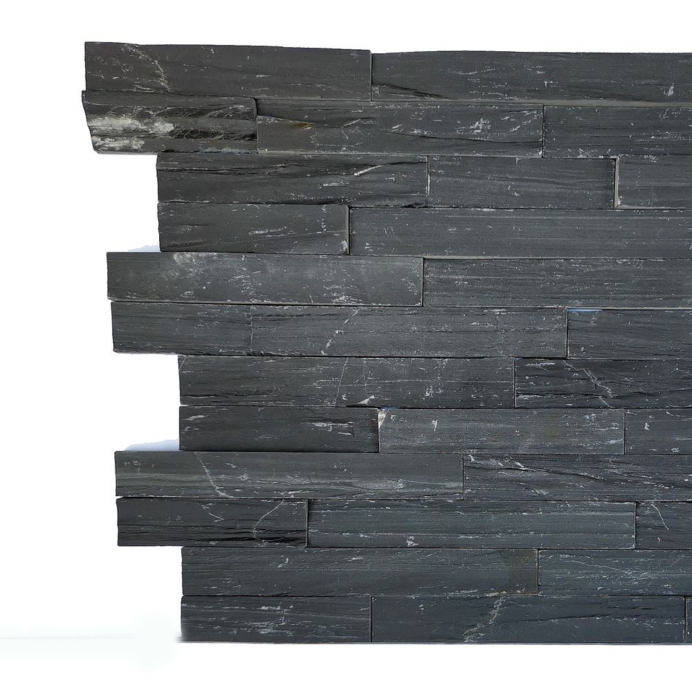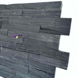 Kamień łupkowy w kolorze czarnym PE16 Tores wnosi głębię do architektury. Jego intensywna barwa stanowi kontrast, dodając bryle budynku nowoczesności i tajemniczości. Panele ścienne z kamienia można używać praktycznie wszędzie, zależnie od preferencji mieszkańców, projektantów lub inwestorów. Mogą one doskonale zdobić elewację w okolicy okien, bram garażowych, drzwi, a także wnętrza pomieszczenia.