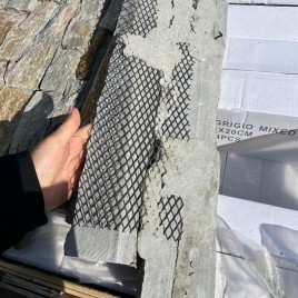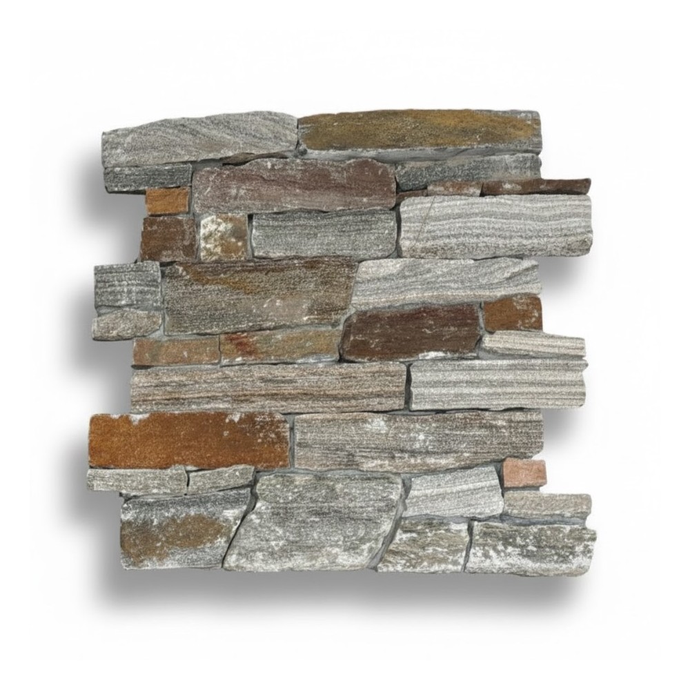 - Montaż: Panele zostały zaprojektowane z myślą o łatwej i szybkiej instalacji bez konieczności fugowania, dzięki czemu są przyjazne również dla majsterkowiczów. Poszczególne paski kamienia są łączone za pomocą żywicy na siatce, co ułatwia układanie.