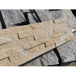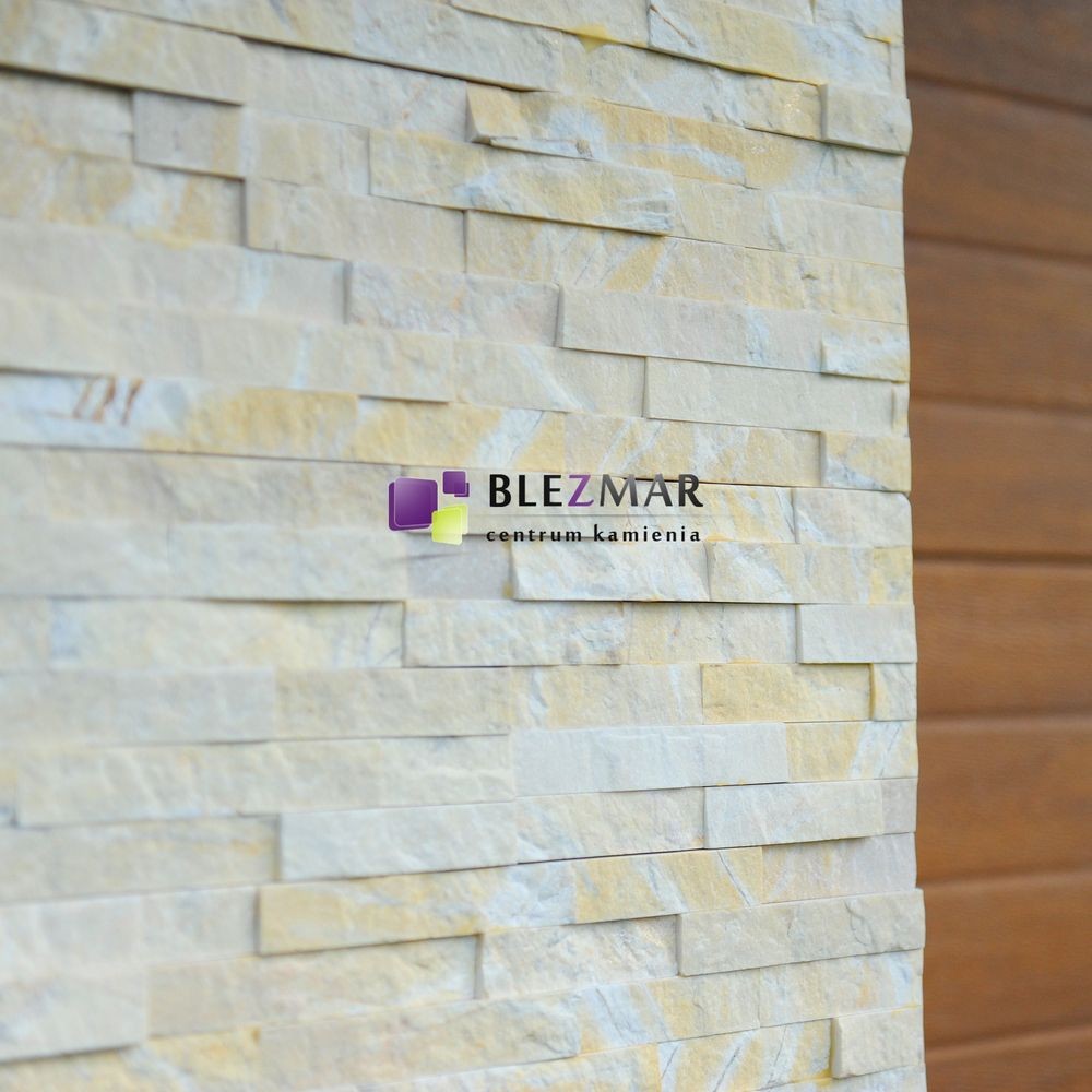 Kremowy kamień dekoracyjny, który znakomicie nadaje się do wykończenia ścian zewnętrznych elewacji jak również aranżacji pomieszczeń.