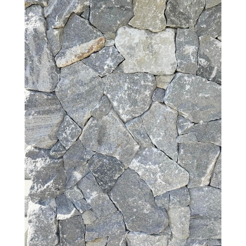 Kamień naturalny z Kolekcji Rocka Face GARDA to naturalny marmur o nieregularnych kształtach ISZARYM KOLORZE. Jego łupana faktura nadaje ścianom oryginalne, wykończenie. Kamień jest odporny na warunki atmosferyczne, zmiany temperatur oraz ma niską ścieralność i nasiąkliwość.