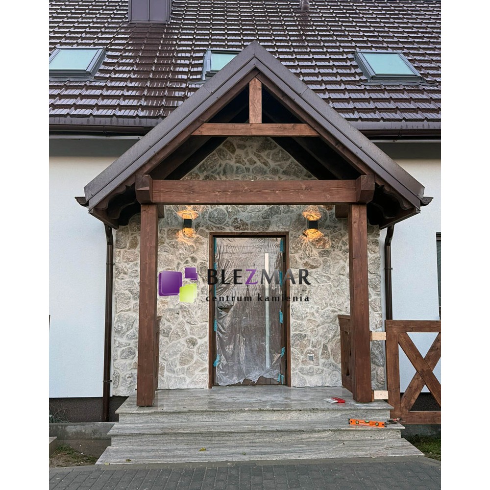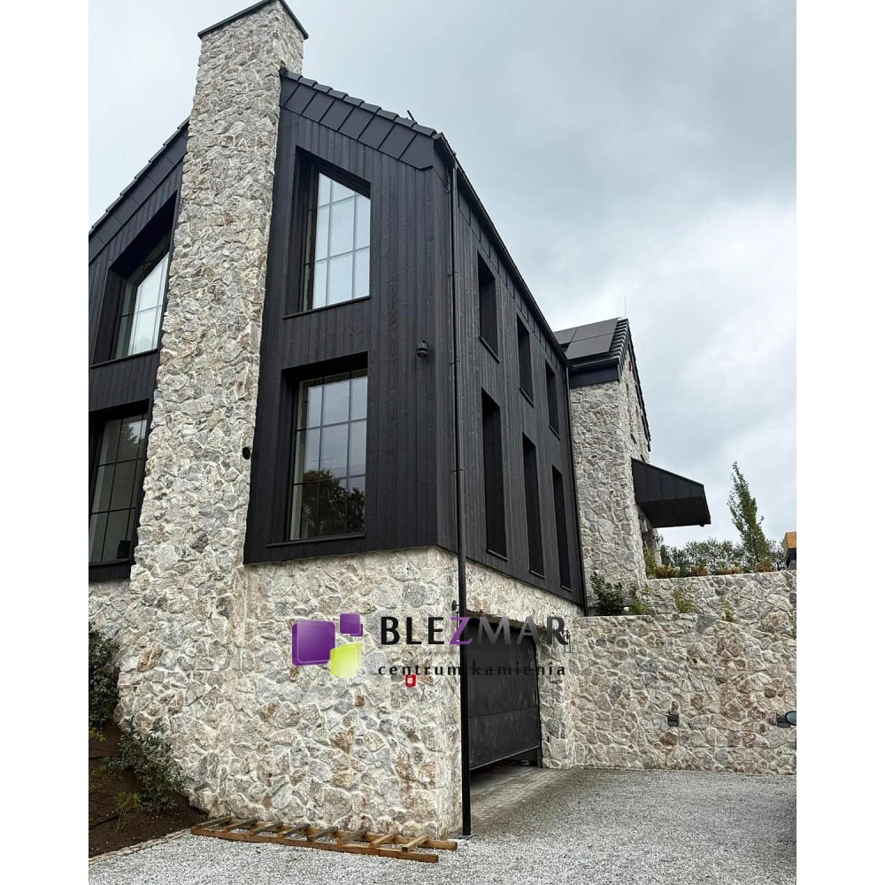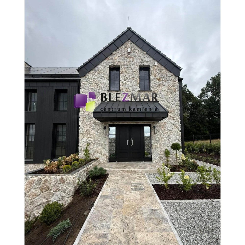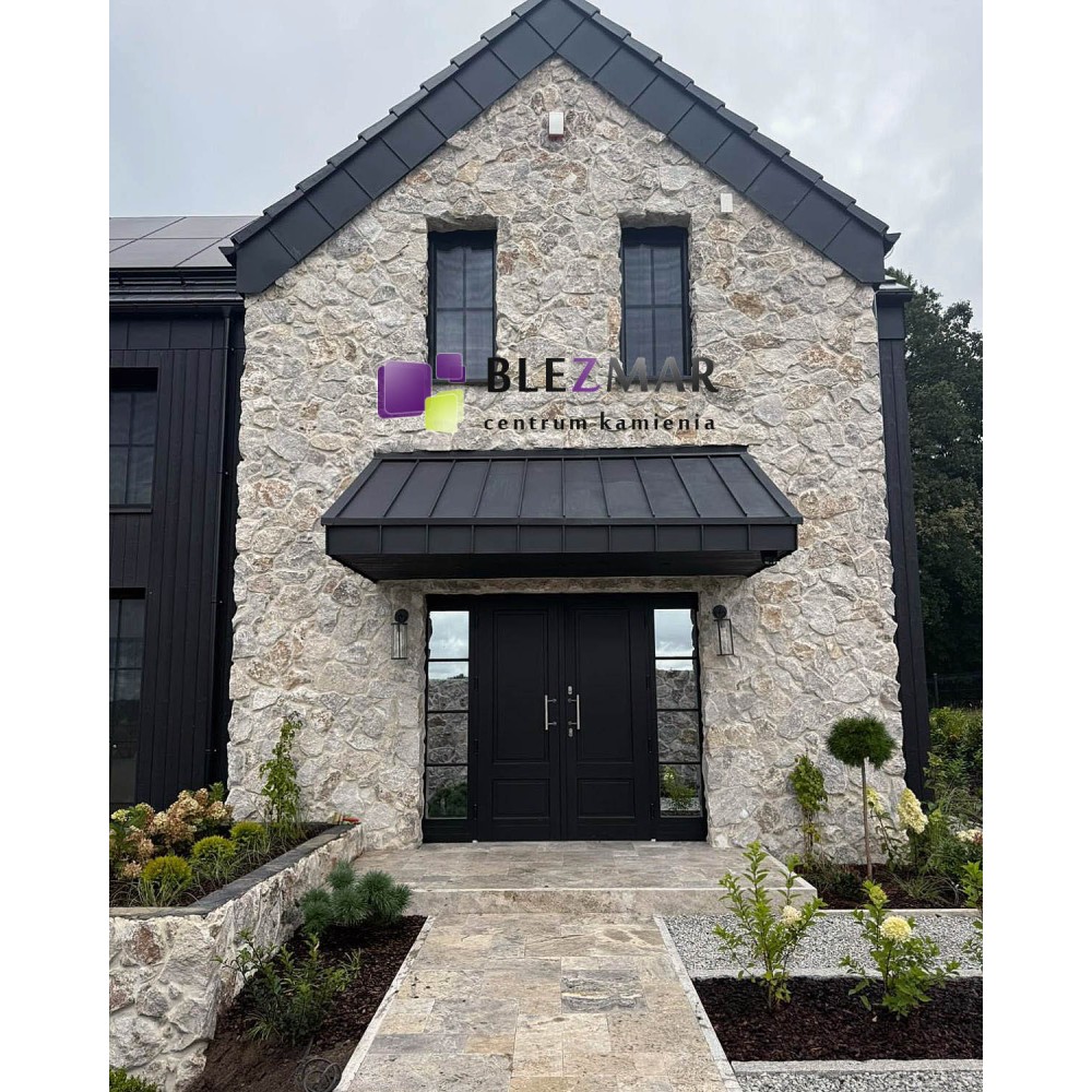 Kamień elewacyjny z kolekcji Rock Face o nazwie SORANO to naturalny TRAWERTYN o nieregularnych kształtach i szarych odcieniach. Jego łupana faktura nadaje ścianom oryginalne, eleganckie wykończenie. Kamień jest odporny na warunki atmosferyczne, zmiany temperatur oraz ma niską ścieralność i nasiąkliwość.