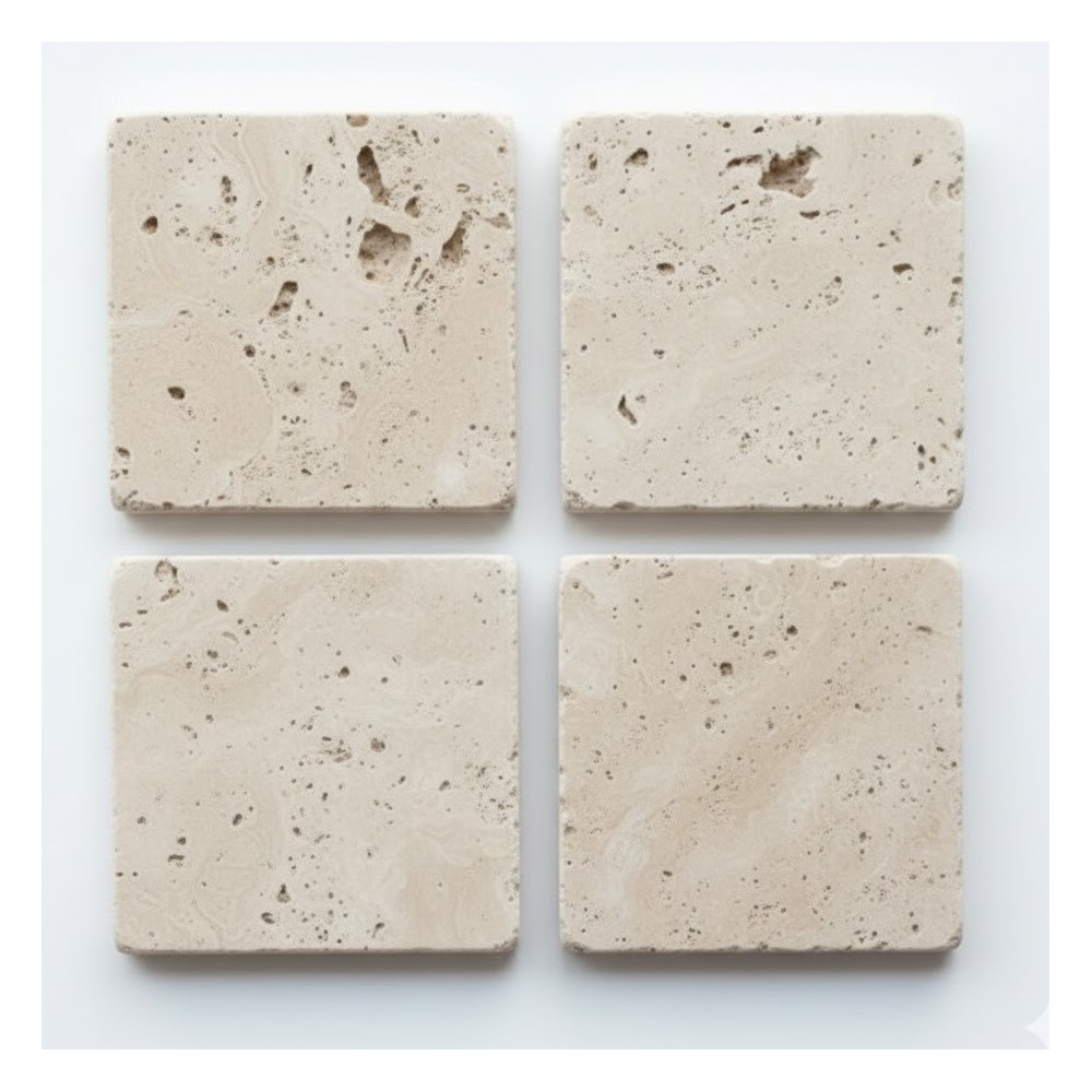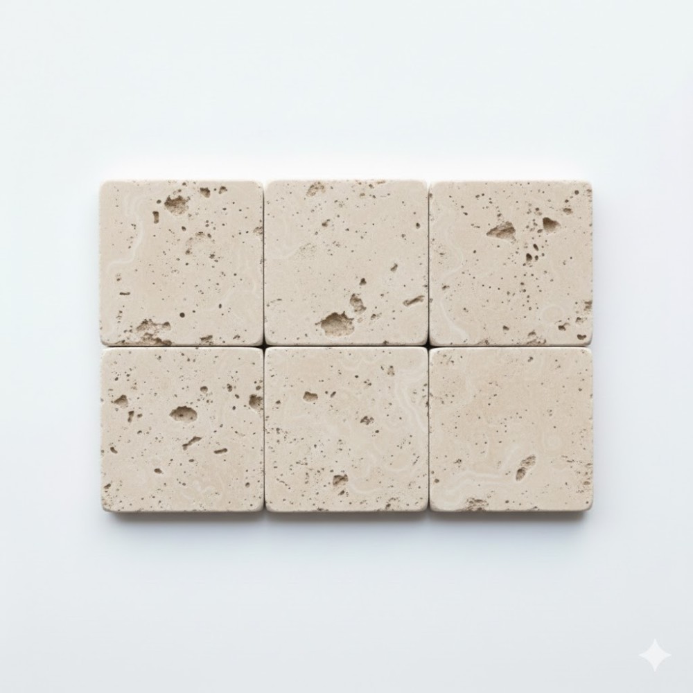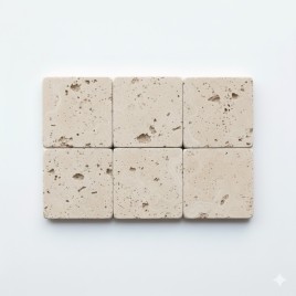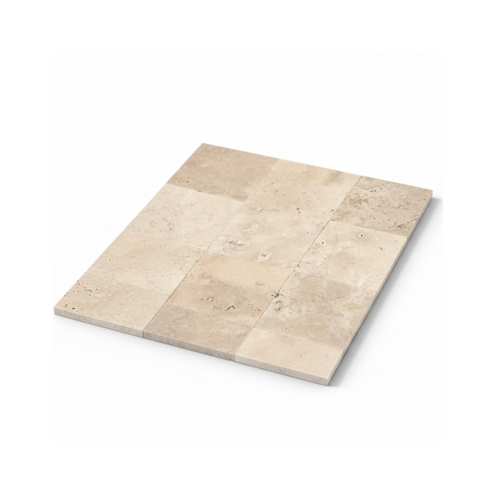 Trawertyn Classic Mix w formie bębnowanych kostek to kwintesencja śródziemnomorskiego designu. Dzięki procesowi bębnowania (obróbka mechaniczna w specjalnych bębnach), każda kostka zyskuje charakterystyczne, lekko zaokrąglone krawędzie oraz aksamitną w dotyku strukturę, która do złudzenia przypomina kamień szlifowany przez wieki.