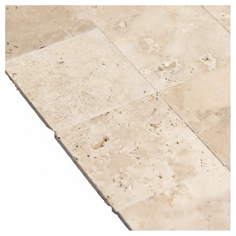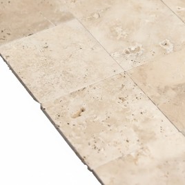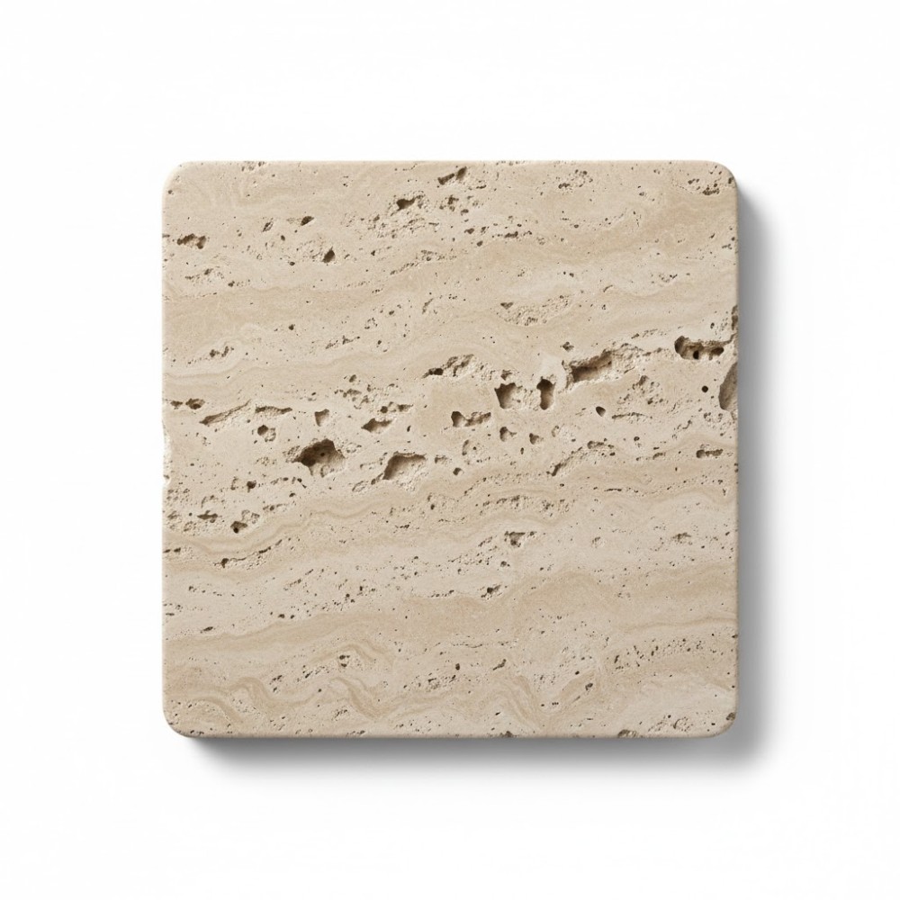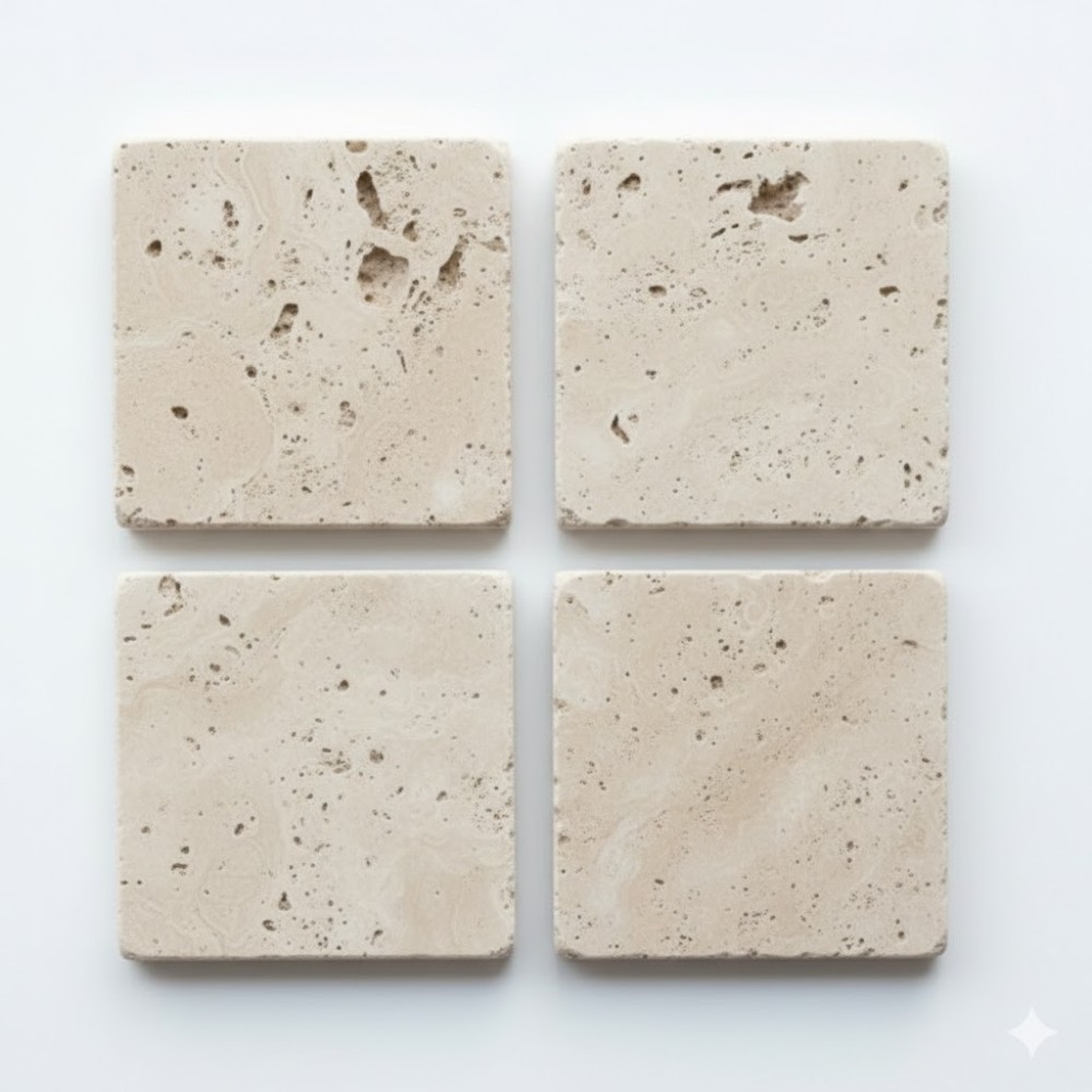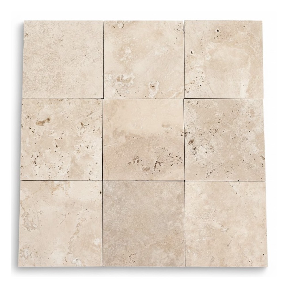 Trawertyn Classic Mix w formie bębnowanych kostek to kwintesencja śródziemnomorskiego designu. Dzięki procesowi bębnowania (obróbka mechaniczna w specjalnych bębnach), każda kostka zyskuje charakterystyczne, lekko zaokrąglone krawędzie oraz aksamitną w dotyku strukturę, która do złudzenia przypomina kamień szlifowany przez wieki.