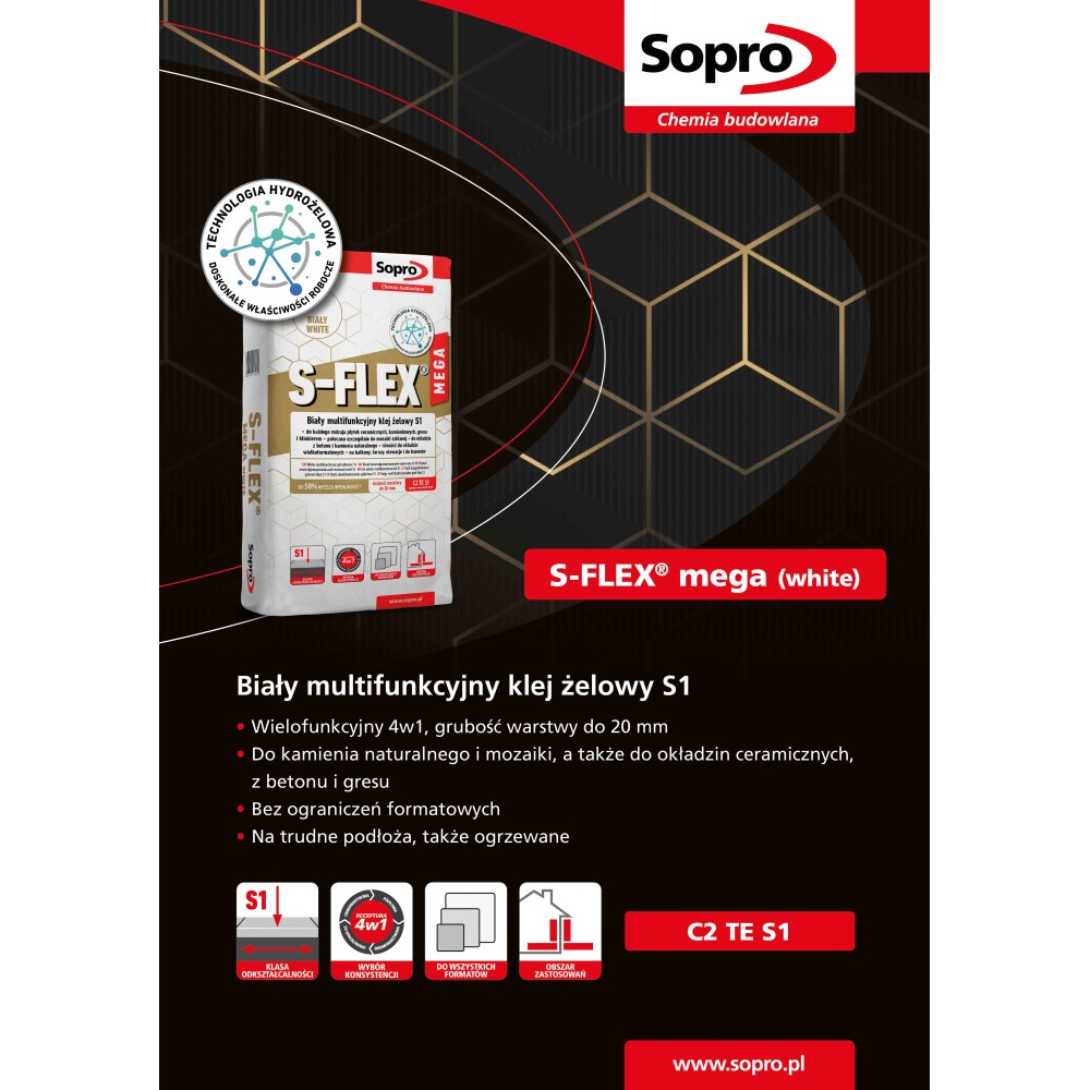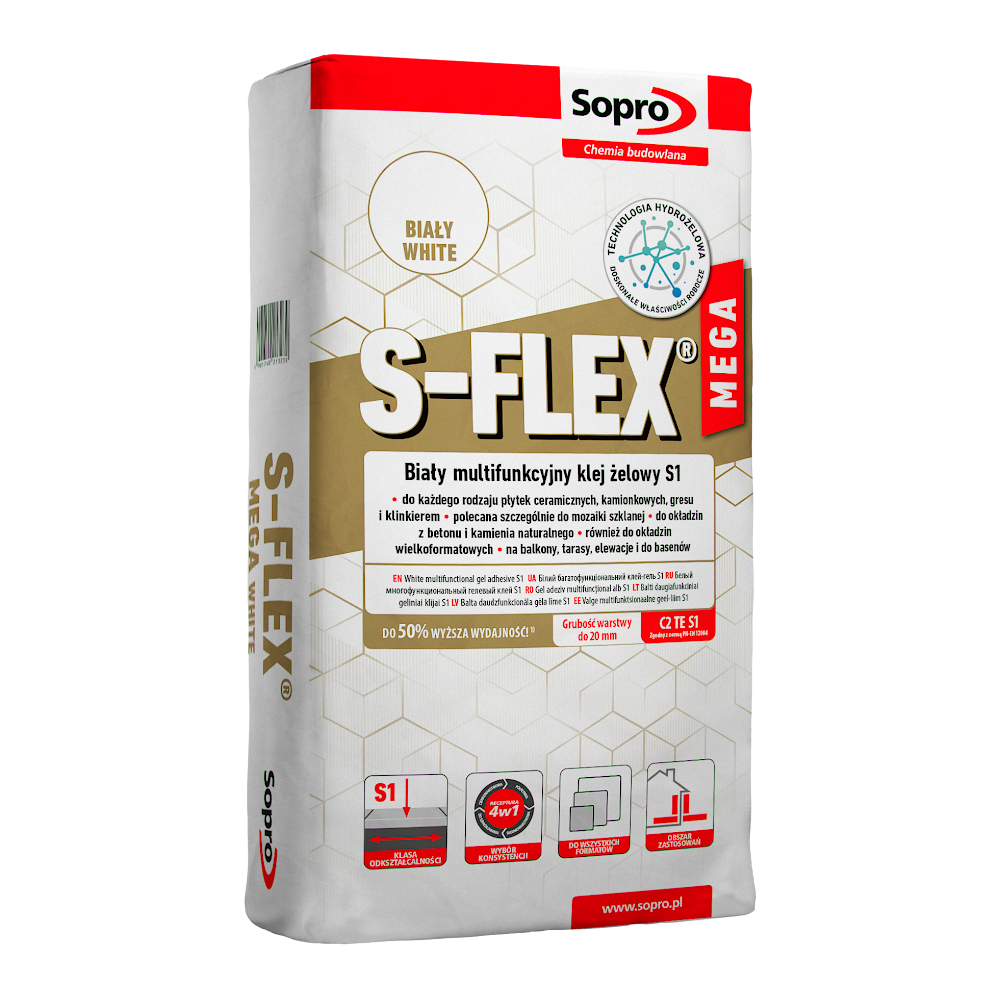 Żelowa zaprawa klejowa SOPRO S-FLEX Mega White S1 (22,5 kg)